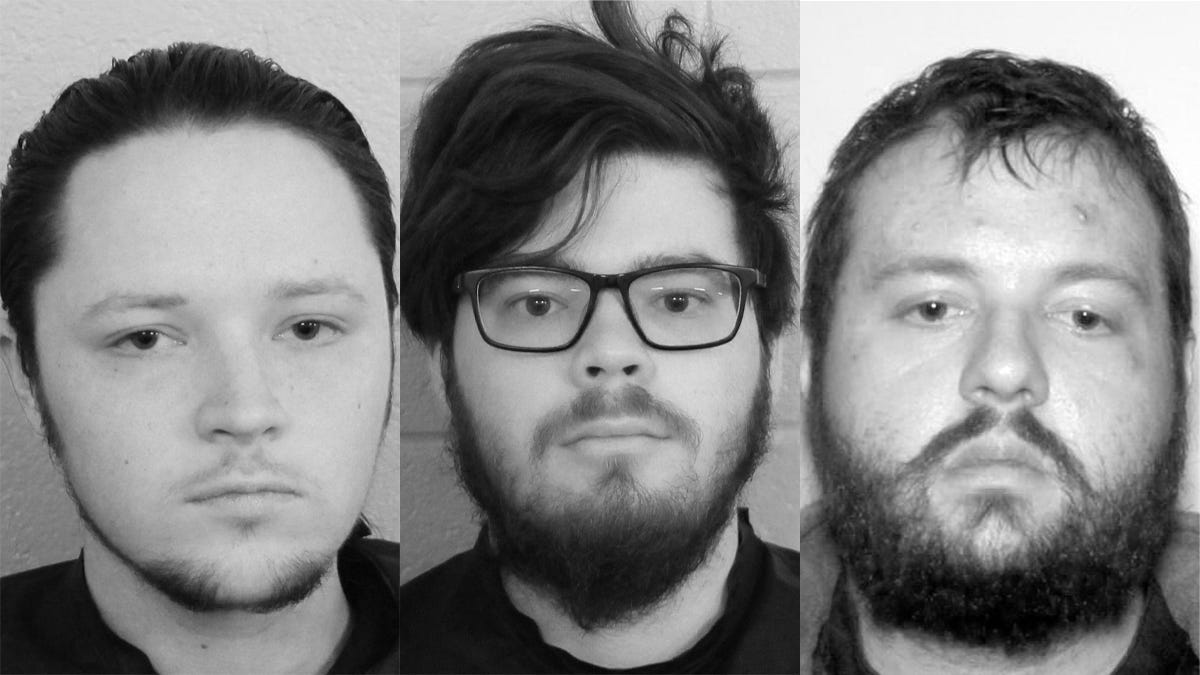 The three members, Luke Austin Lane, Jacob Oliver Kaderli, and Michael John Helterbrand, were arrested and ordered held without bail.