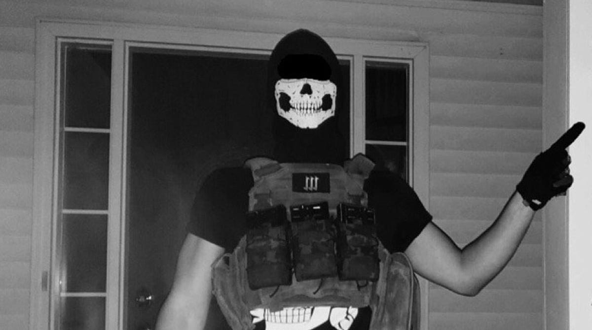 A grainy black-and-white photo appeared on the social network Telegram. It showed a man in a skull mask and tactical vest, pointing to the numbers tacked up on the Sheas’ front porch.